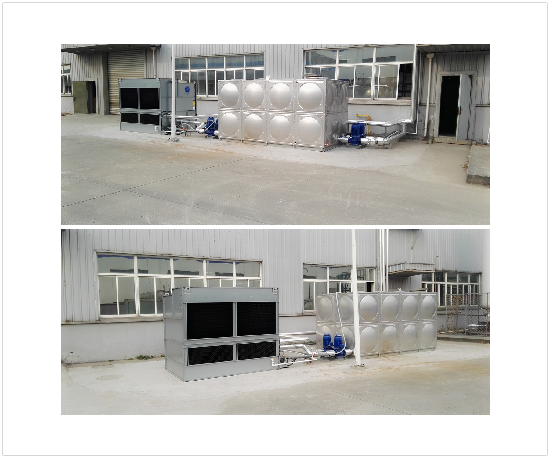 寧波中科畢普拉斯橫流閉式冷卻塔現(xiàn)場 用于冷卻真空熔煉爐、結(jié)晶器