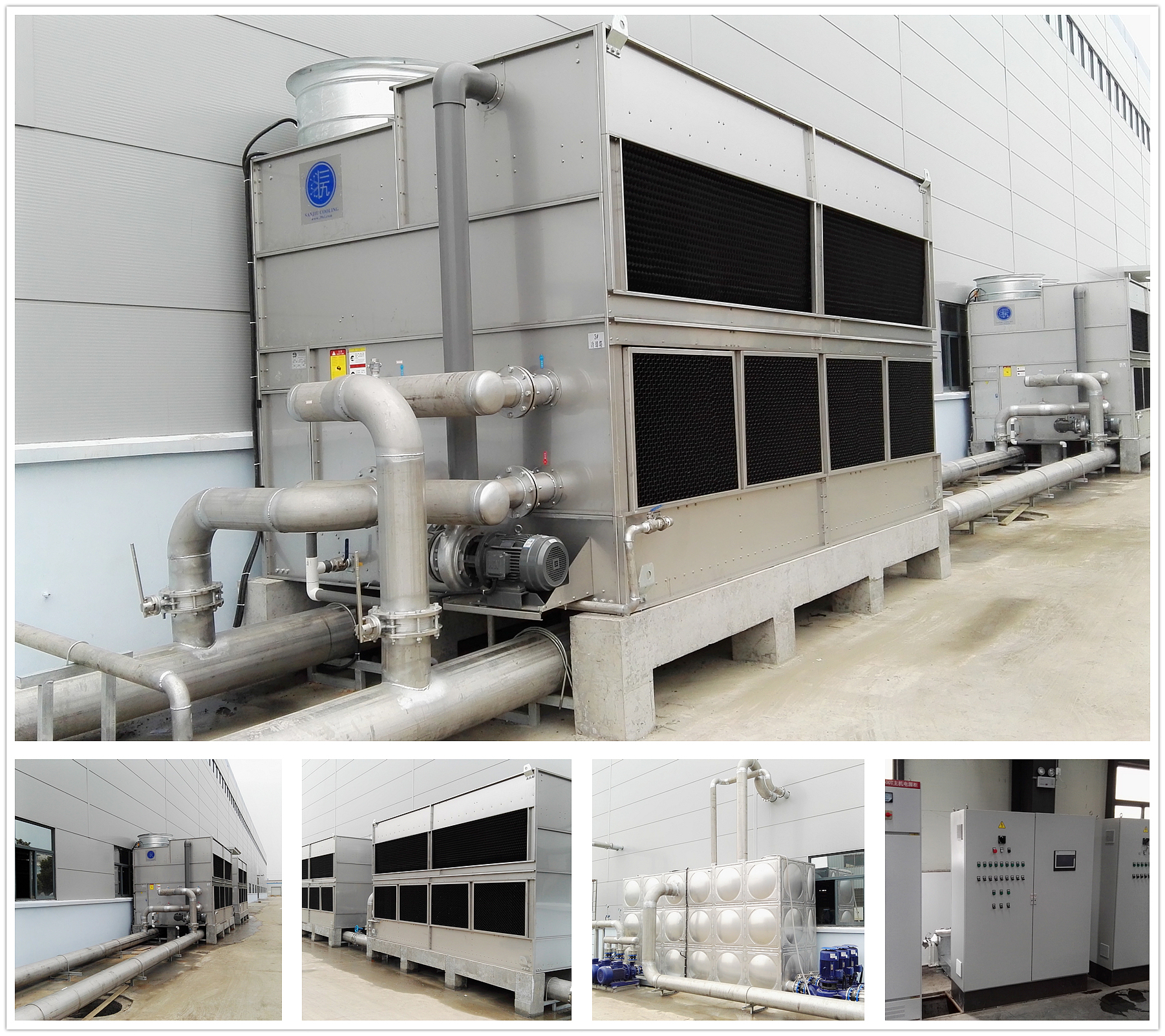 蘇州匯川橫流閉式冷卻塔現(xiàn)場 用于電動汽車電機測試系統(tǒng)