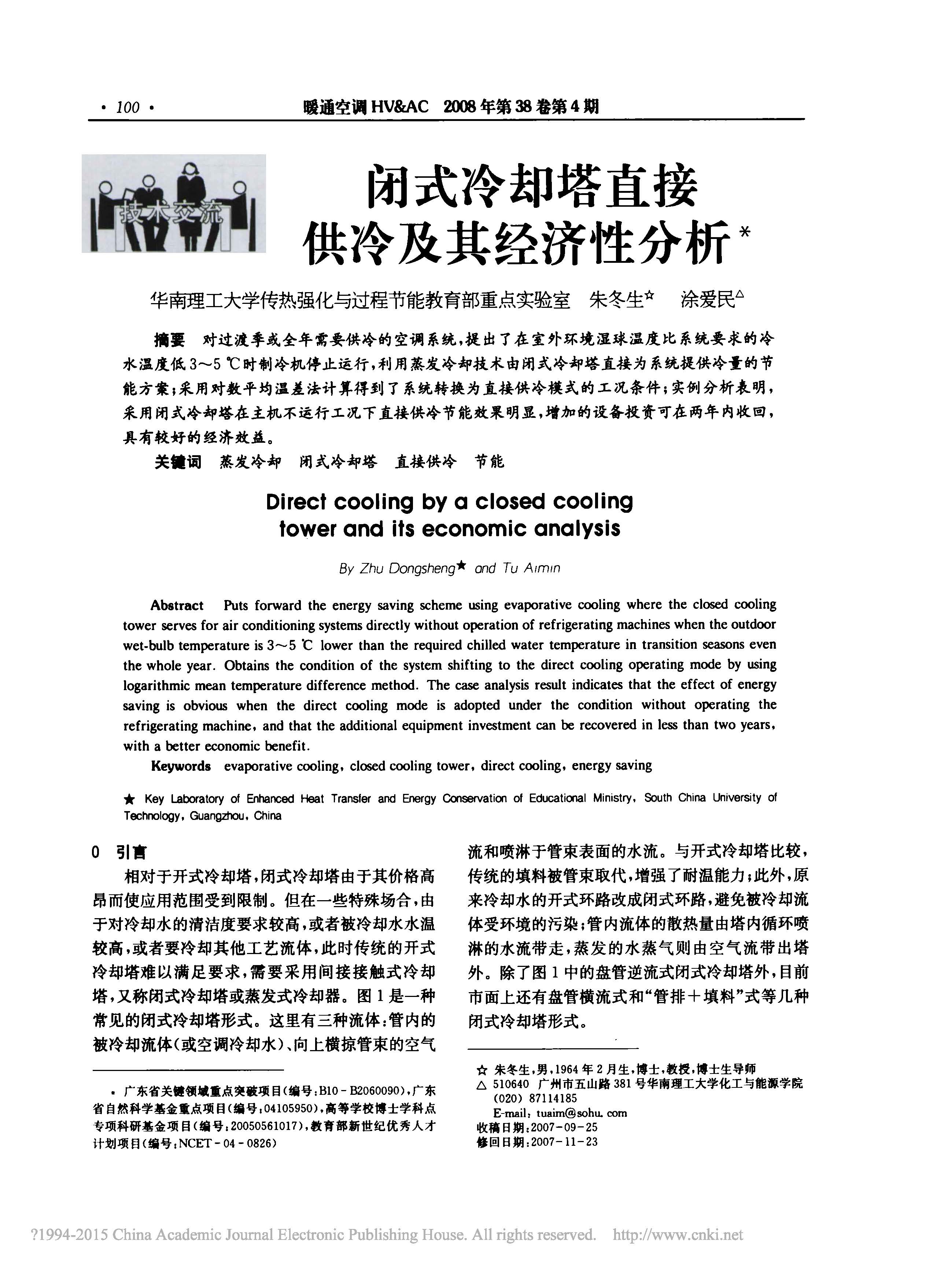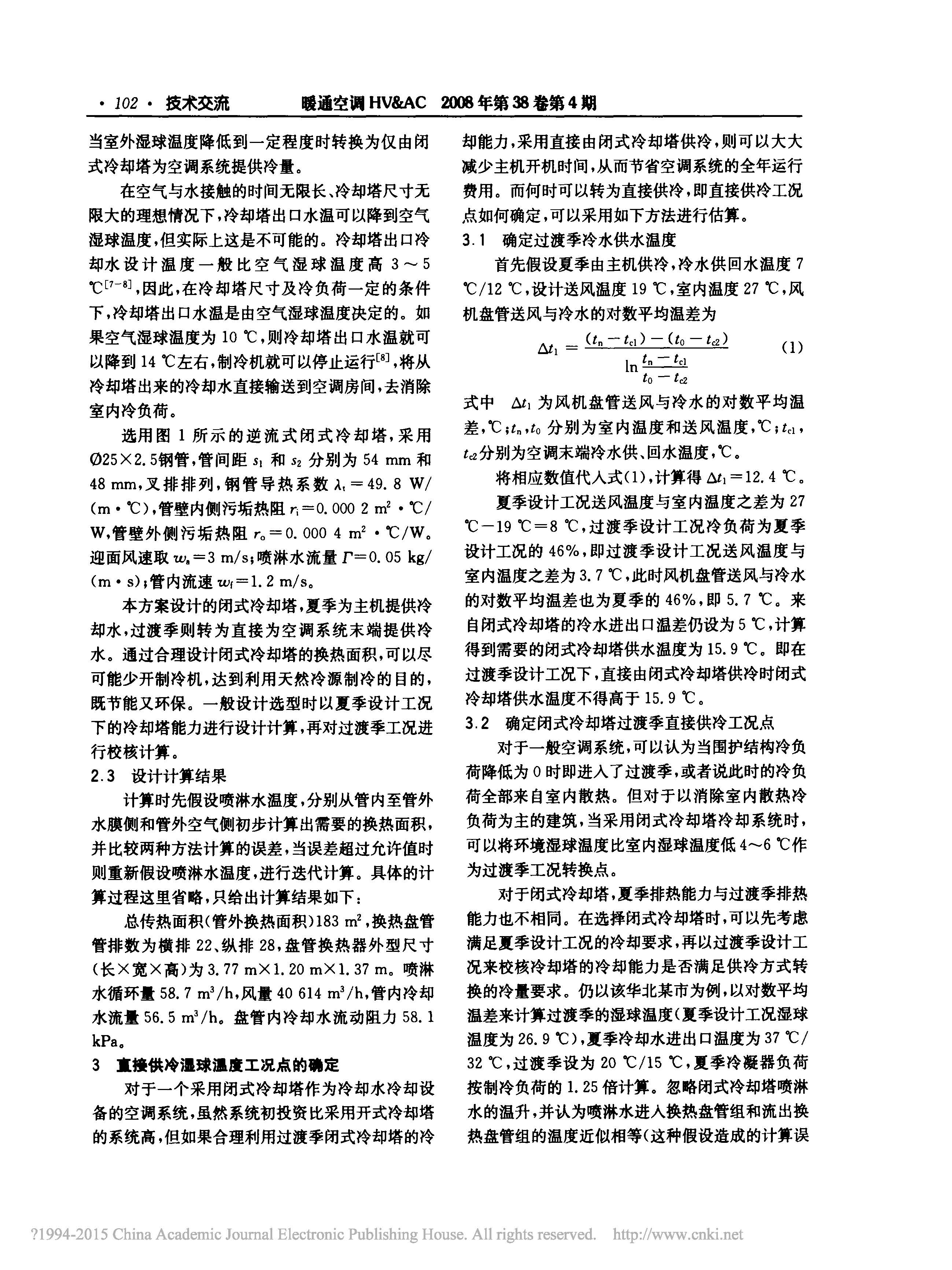 閉式冷卻塔直接供冷及其經濟性分祈禱