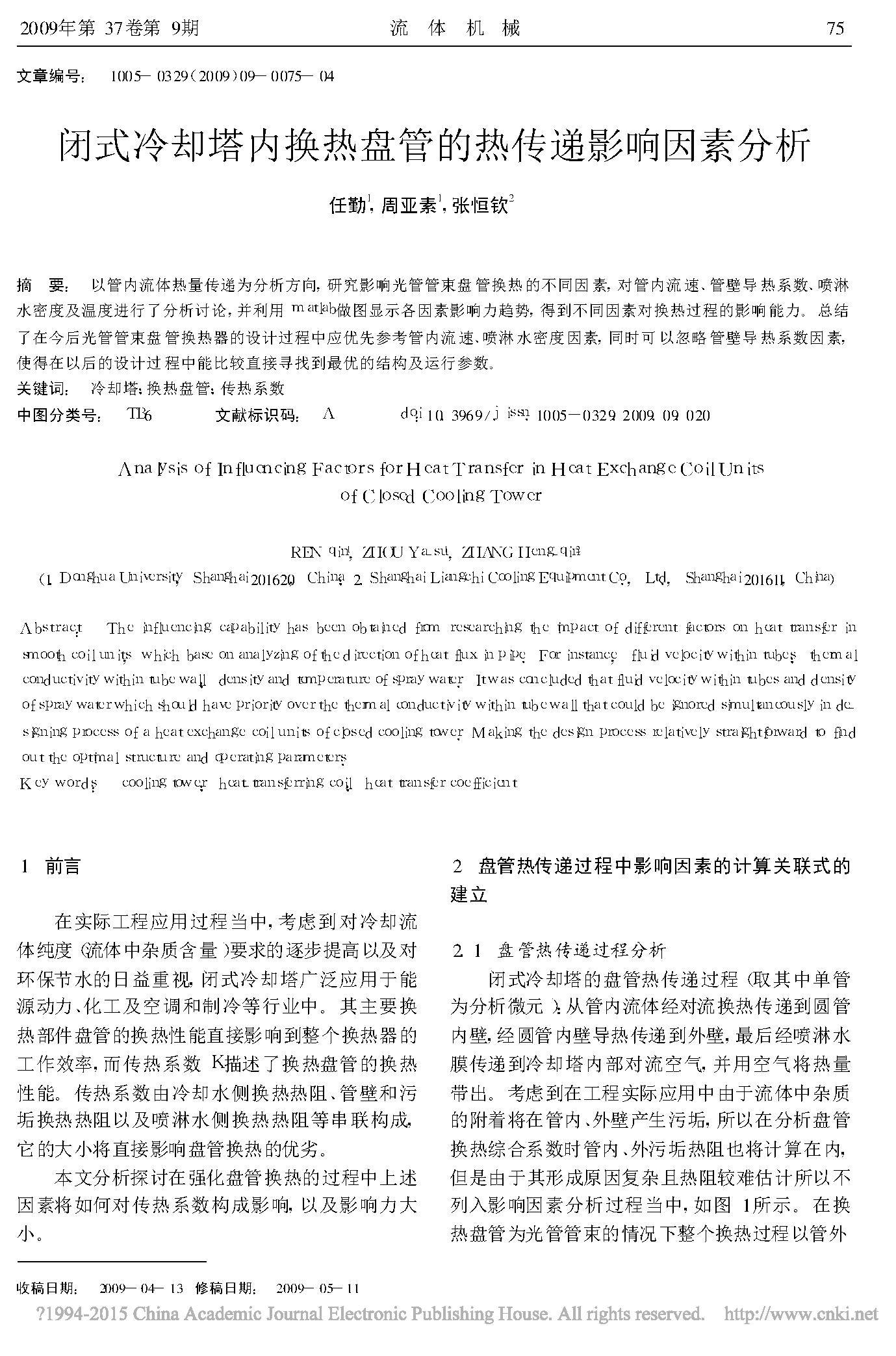 閉式冷卻塔內換熱盤管的熱傳遞影響因素分